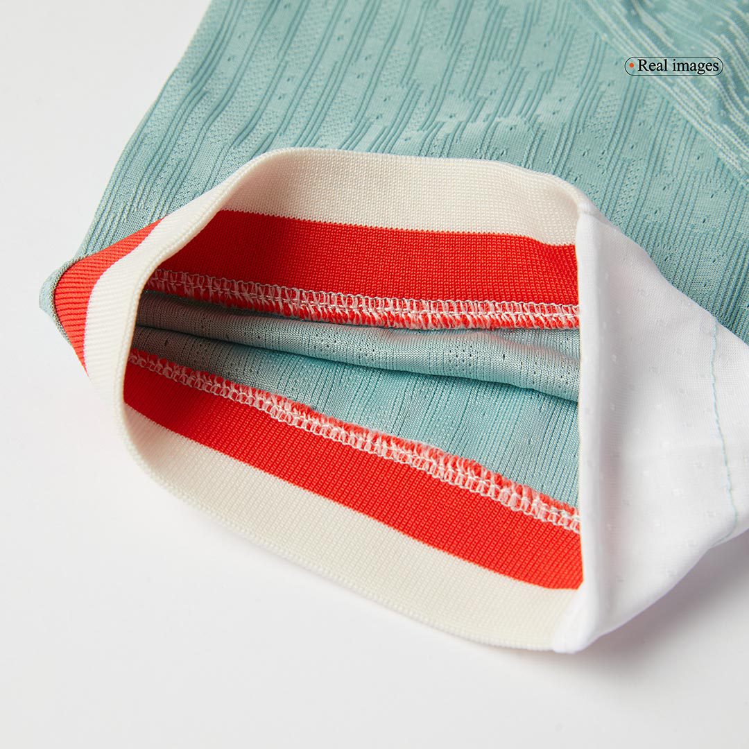 Atl¨¦tico de Madrid has revealed their away kit for the upcoming 2024/25 season,let me introduce Auténtico Atletico Madrid away soccer jersey 24/25 to you. The Atletico Madrid jersey takes a reference of the Neptune Fountain, where fans gather to celebrate a victory, just as they did in 1995/96. The Atletico Madrid jersey is a combination of green red and a little white, red and white collar are distributed on the collar and cuffs, the legendary Atletico Madrid team badge is designed into red. On this Atletico Madrid jersey, it features a ribbed crew neckline and short sleeves for a classic look.